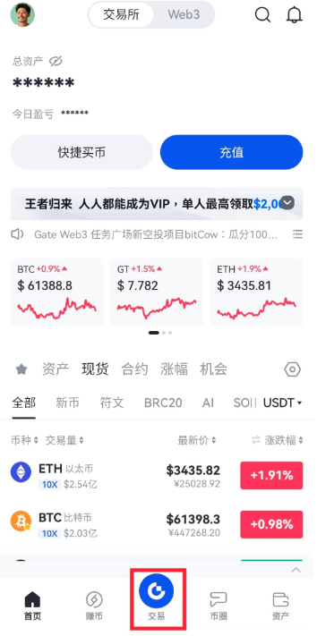点击Gate Web3首页上方菜单栏“交易”进入页面。