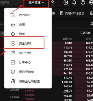 2,以usdt为例,大家需要记得在出售USDT前需要将USDT划转至资金账户才可进行交易,选择首页的“资产管理” “资金划转”