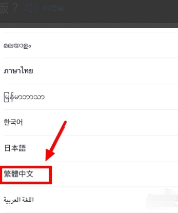 5、一直拉到语种列表的底部,可以看到[繁体中文]。