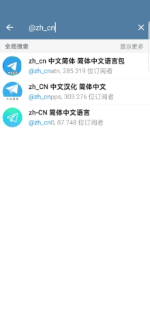 2.在搜索栏中输入@zh_cn进行搜索,然后点击第一个中文简体群组