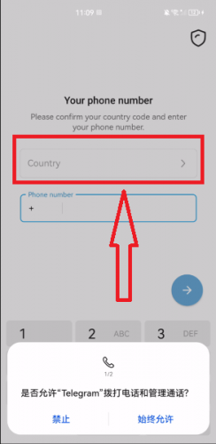 2.点击"Country",选择手机号码的国区