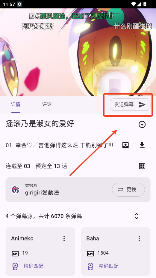 1.在观看番剧的页面,点击更换播放源按钮。