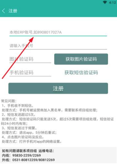 3、为完成创建账号,您需提供以下信息:您的手机号、ERP账号和密码。