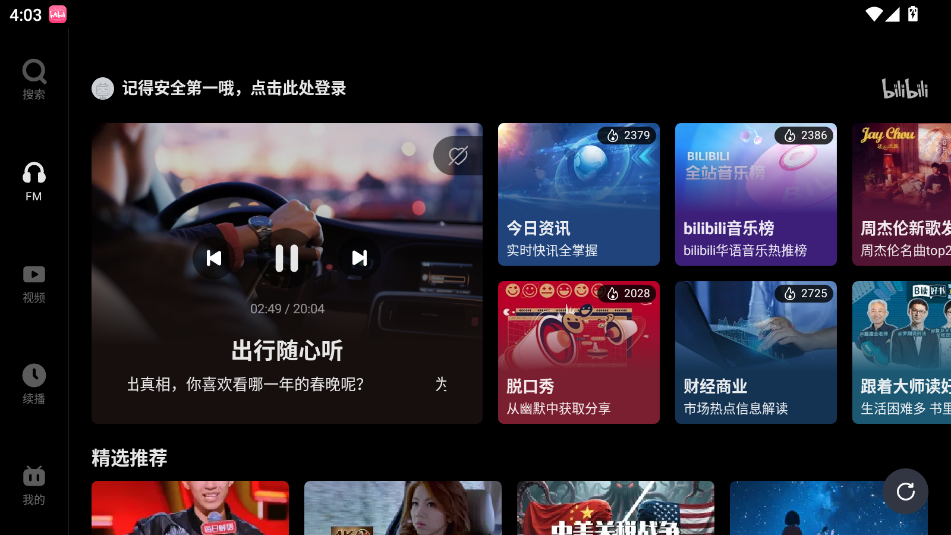 哔哩哔哩车载版是一款专为车主设计的车载娱乐应用,提供丰富的视听内容,涵盖了动漫、电影、音乐、直播、短视频等多种类型。用户可以在驾驶途中通过车载系统轻松享受高质量的视频和音频内容。该应用具有简洁的操作界面和语音控制功能,确保用户在驾驶时可以安全便捷地使用。通过与车载设备的无缝连接,哔哩哔哩车载版让你在路上也能享受丰富的娱乐体验,同时减少对驾驶安全的干扰。