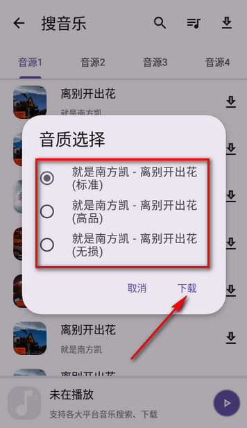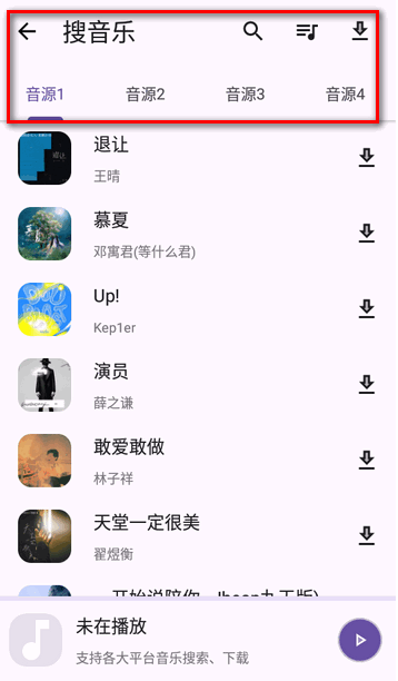 进入搜音乐界面,可选择音源后点搜索按钮。