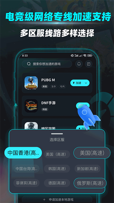 4、支持多种游戏:覆盖热门外服手游,满足玩家对不同类型游戏加速的需求。
