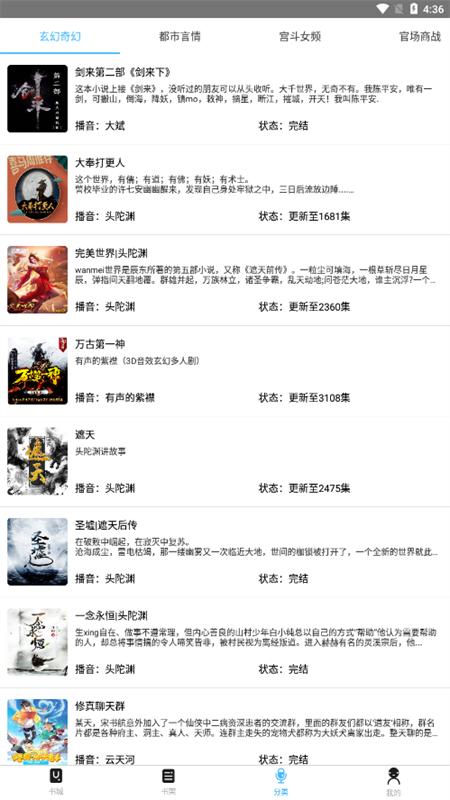 都市爽文、悬疑推理、玄幻修仙、 江湖武侠等超全分类, 海量小说免费听。