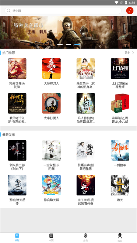 听中国听书app纯净版邀请了知名主播高保真录制,拥有能够媲美CD的高清音质,并且软件收录了金庸、郭德纲、易中天、单田芳等大师的经典作品,全方位满足用户的收听需求,给用户带来最舒适的听书体验。另外,该软件的更新速度超快,能够确保给用户带来最新的听书内容。
