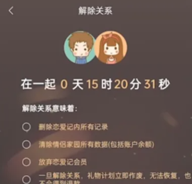 在账号界面中,通过点击解除关系的按钮,进入解除关系界面。