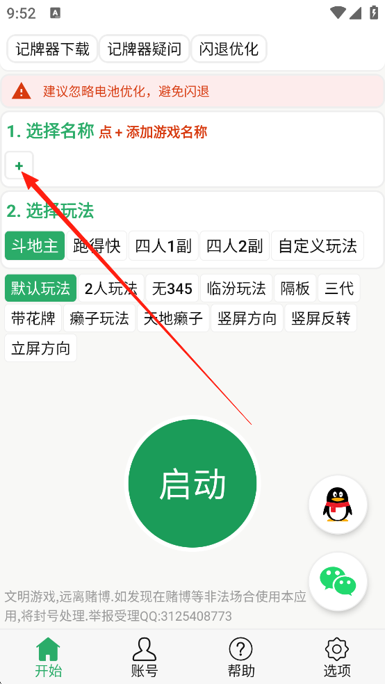 1、打开自动记牌器手机版,登录之后,点击添加要游玩的游戏名称