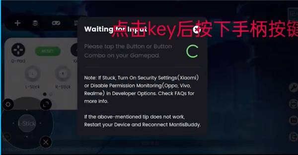 14、点击key,按下手柄按键即可。