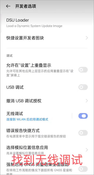 6、找到无线调试;