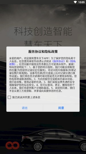 下载并安装打开慧车天下行车记录仪,阅读协议自行选择是否同意