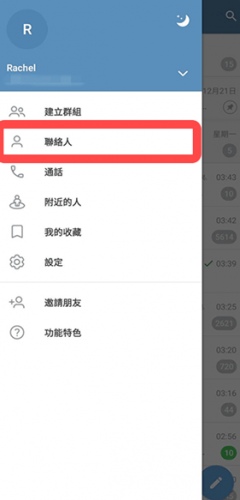 1.打开软件点击左上角的“菜单”图标,然后点击“联络人”