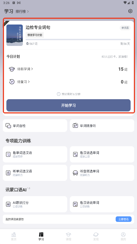 5.学习进度跟踪:在个人中心查看学习进度,包括已学习的内容、测试成绩、词汇量等,帮助你合理安排学习计划。