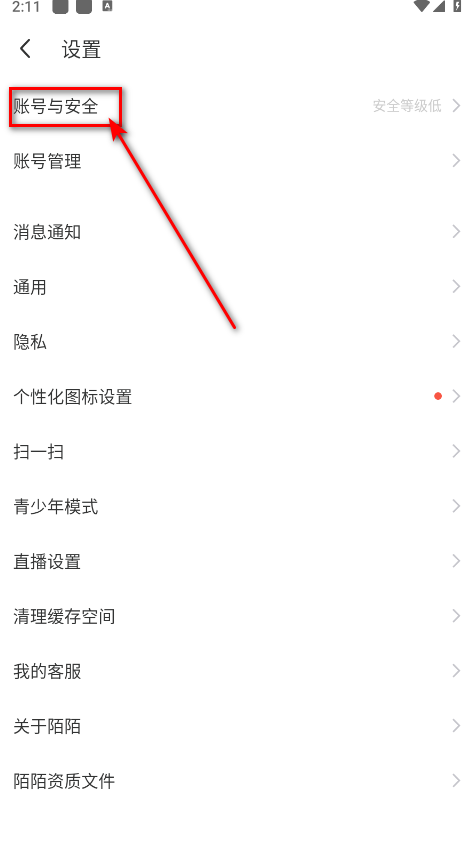 3.然后点击账号安全