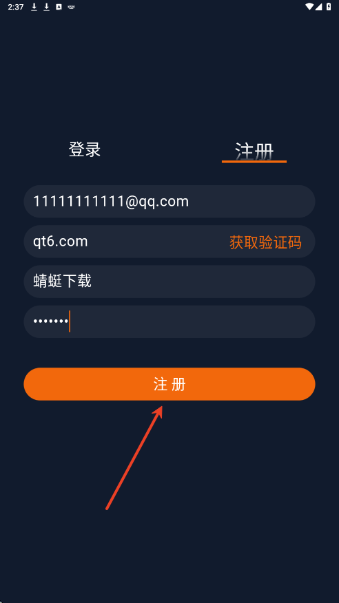 3.输入你的邮箱号,获取验证码,自定义密码、昵称,点击【注册】就成功了。