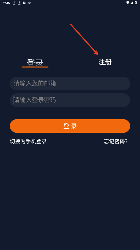 2.切换到注册页面。