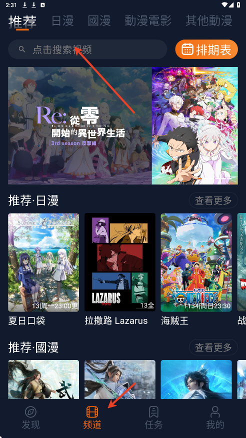 1.点击频道内上方搜索框