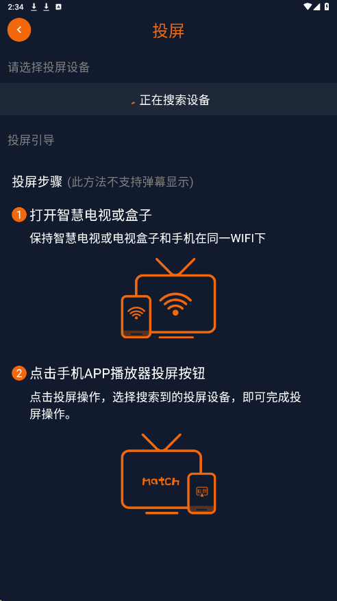 3.确保手机和电视处于同一wifi环境。搜索电视设备名称,连接即可。