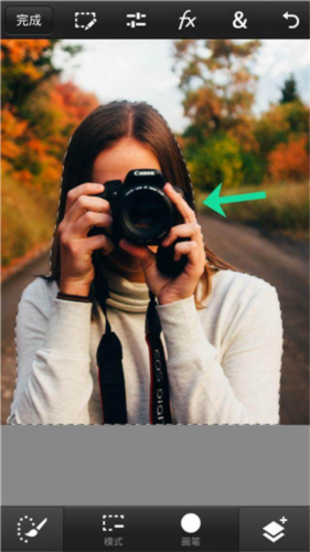 3、双指缩放画面,调整笔刷大小,精细增加或减少选区范围。