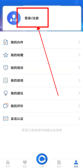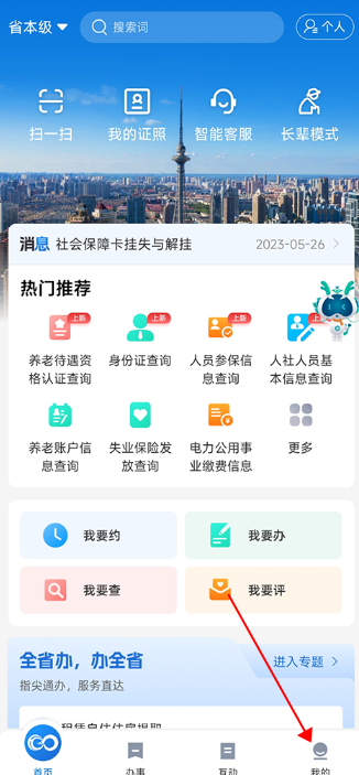 进入新版黑龙江全省事app主界面,首页上方提供了高频的服务和应用,在右下角选择"我的"。