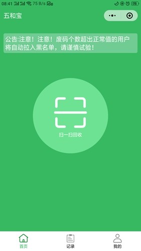 1、打开五和宝应用,点击扫一扫回收功能;