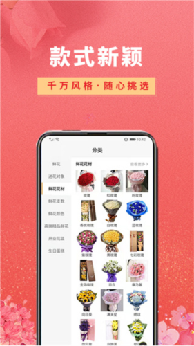花朵推荐,系统会向您展示多种不同款式的鲜花,均支持配送到家服务。