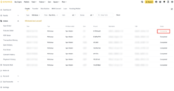 登录币安账户,将鼠标悬停在钱包图标上,然后点击【订单】-【钱包历史】查看您的加密货币提现记录。