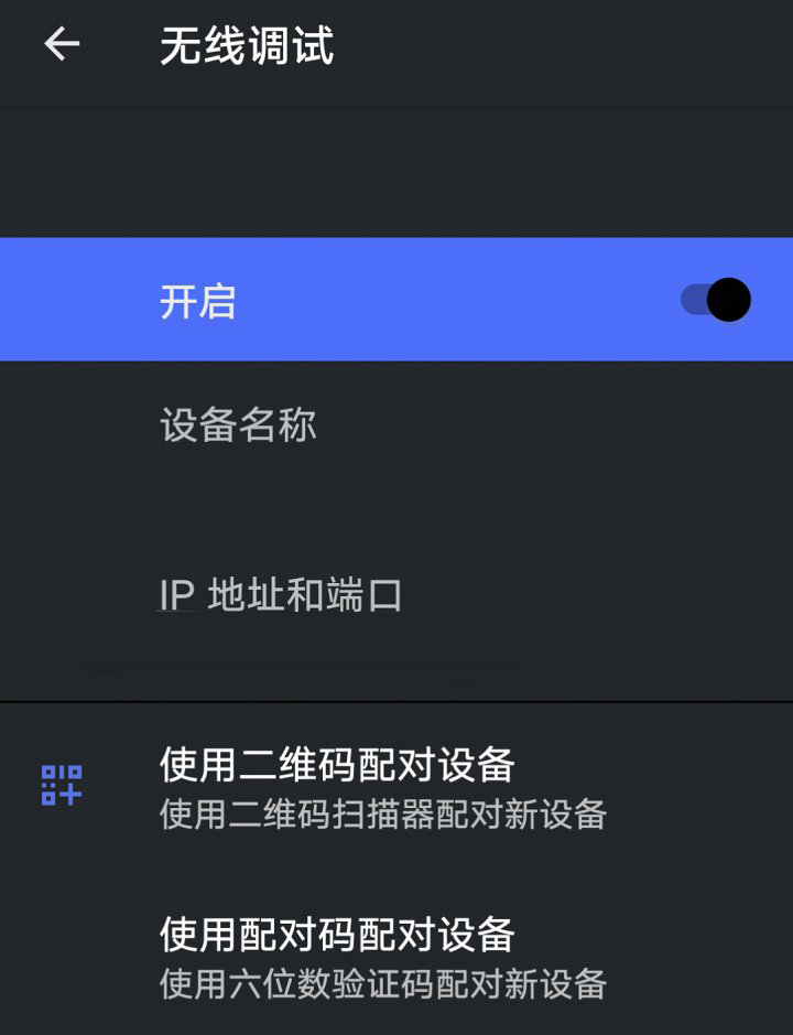 2、进入开发者模式后,下滑页面找到并打开无线调试后(图2),