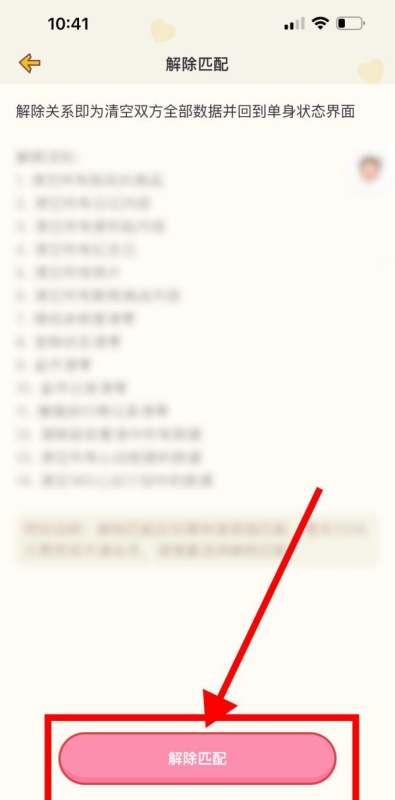 3.选择解除匹配功能在设置页面中,找到并点击“解除匹配”选项(通常位于账号或关系管理分类下)。