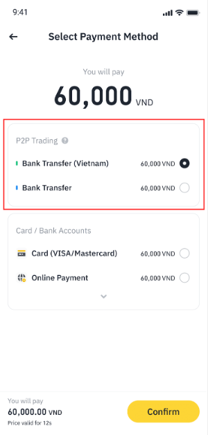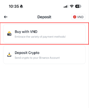 2. 我们以使用 VND 买入加密货币为例。选择【用 VND 买币】。