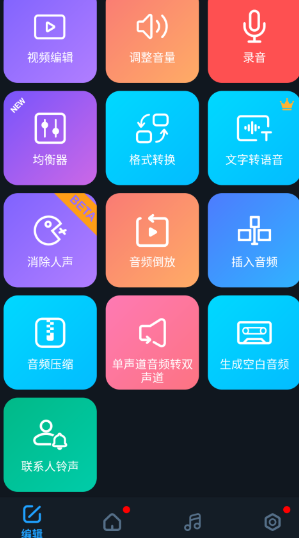 1、在本站下载超级音乐编辑器手机版,一进去就能看到超多不一样的功能,需要做什么,就可以点击哪个功能,界面简洁,一目了然。