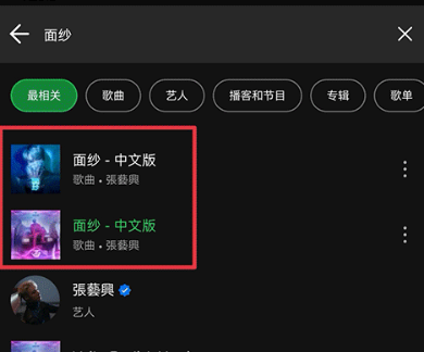 1、打开app后,在搜索页面中输入歌曲名字或者艺人名字