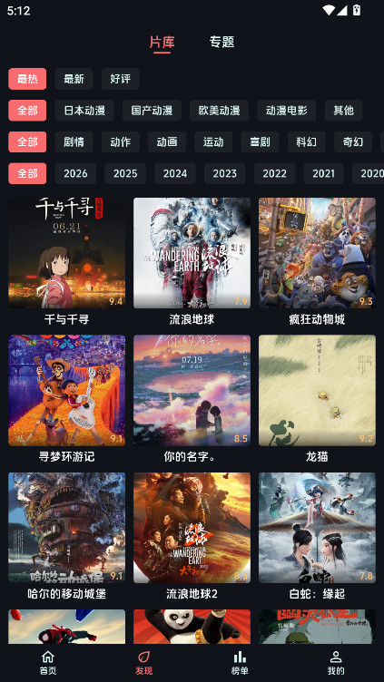 2.在【发现】页面,支持按热度、年份、类型(如热血、恋爱、悬疑)、地区等多维度筛选,轻松挖掘冷门佳作与经典宝藏番剧。
