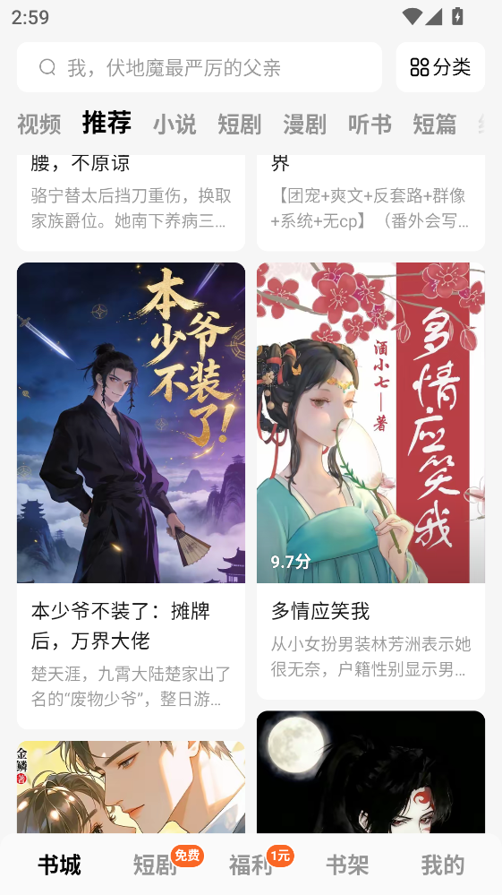 2.进入首页,查看相关小说推荐,也可以直接搜索书籍进行阅读。