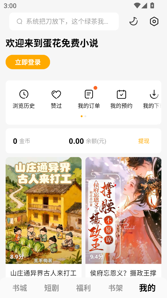 1.打开蛋花免费小说软件,注册登录,完善个人基本信息,即可使用。