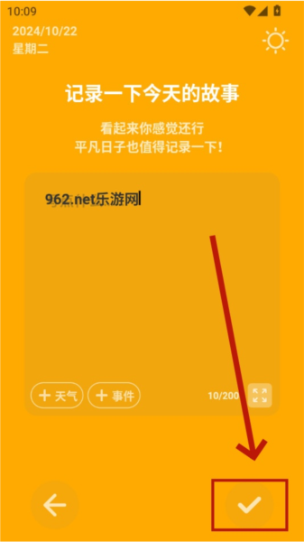 输入具体的日记内容后,点击对勾图标即可完成保存;