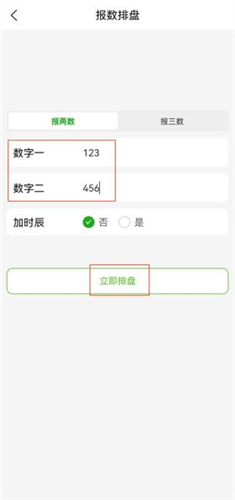 2、此处以报数排盘为例,根据需求输入数字后点击立即排盘;