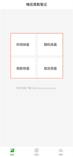 1、打开梅花易数笔记应用,选择排盘功能;