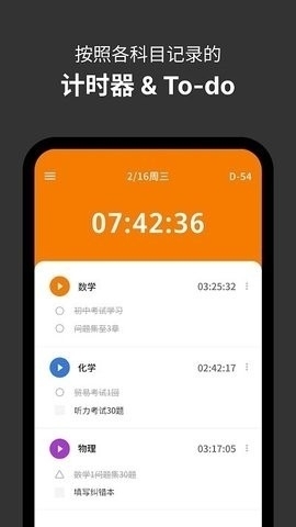 2. 支持为不同科目设置倒计时,让你清楚掌握各科目的剩余时间,从而合理分配学习精力。