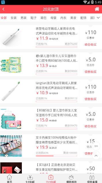 2. 多款,多款:9.9元包邮,疯狂抢排名,今日新品。折扣、购物指南、团购和优惠——各种各样的折扣商品,价格最低,值得购买,以迎合每个用户的喜好。