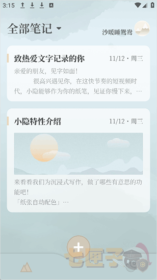 小隐笔记app是一款专注于文字创作的手机笔记记录软件,采用了绝美的经典水墨国风美学,可以有效抚平用户躁动的内心。小隐笔记(笔记记录)官方最新手机版软件为用户提供了多种不同的笔记创作类型,包括灵感备忘、诗歌写作、旅行随记、笔记摘抄等内容。有需求的用户快去下载小隐笔记app,去记录你的内心世界。