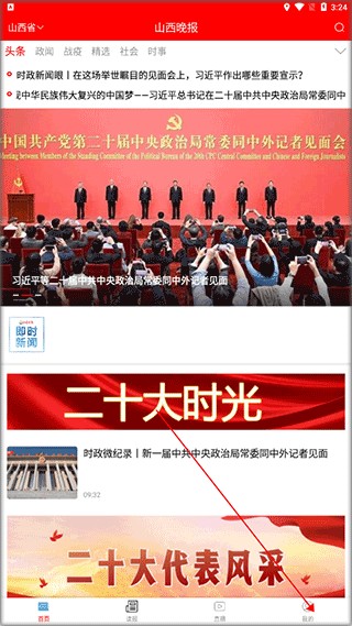 1、下载安装好山西晚报app,进入首页,点击我的。