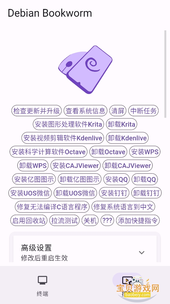 A:①使用系统自带的“tmoe”工具一键安装(容器内VSCode、输入法均通过此方式安装);②参考Ubuntu/Linux通用安装教程,通过终端执行命令安装;③软件首页提供图形处理、视频剪辑等分类软件的快捷安装按钮。
