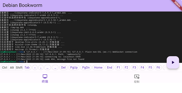3.在图形界面返回时,可以回到终端界面和控制界面进行更多操作。