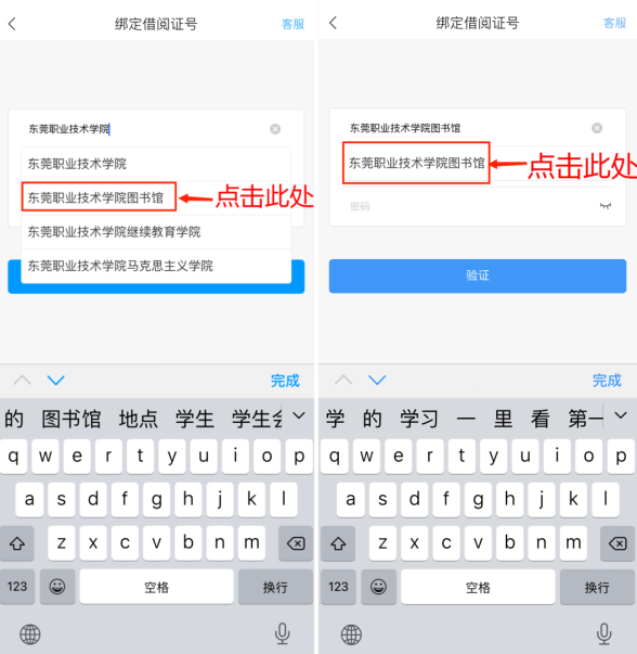 一定要 点击下拉框里出现的“学院图书馆”,才会跳转到下一步绑定的界面(如果只是手动输入信息而不是点击下拉框的选项,是无法跳转到下一步的)。