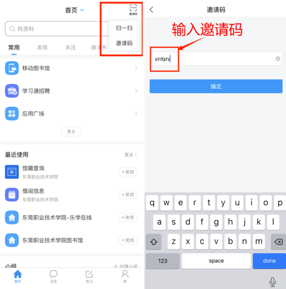 进入学习通首页后点击右上角“邀请码”