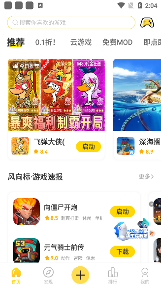 在本站下载闪玩App并打开软件,在首页可以看到许许多多的热门游戏;