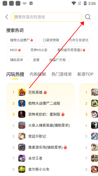 也可以搜索框搜索喜欢的游戏